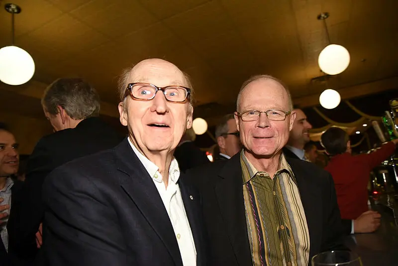 Craig Oliver, pictured at Don Martin's retirement party with former CTV reporter Roger Smith on Dec. 11, 2019, announced his retirement from CTV in December 2019 after nearly 40 years with the network. The Hill Times photograph by Andrew Meade