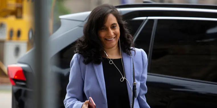 Public Services and Procurement Minister Anita Anand arrives at the West Block for a press conference on the government's COVID-19 procurement efforts on June 2, during which she announced that the feds have signed a contract with Becton Dickinson Canada for 37-million syringes in anticipation of a vaccine. The Hill Times photograph by Andrew Meade