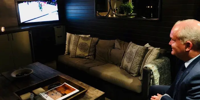 Many Twitter users poked fun at Conservative Leader Erin O'Toole's choice of attire when he tweeted a photo of himself watching a Raptors game last week wearing a suit and tie. Some thought he was channelling his inner professional basketball team owner vibe. Photograph courtesy of Erin O'Toole's Twitter