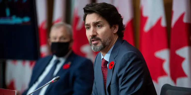 Prime Minister Justin Trudeau, pictured Nov. 10 during a press conference on the government's COVID-19 response in the Sir John A. Macdonald Building. Alongside Veterans Affairs Minister Lawrence MacAulay, he announced a $20-million temporary Veterans Organizations Emergency Support fund. The Hill Times photograph by Andrew Meade