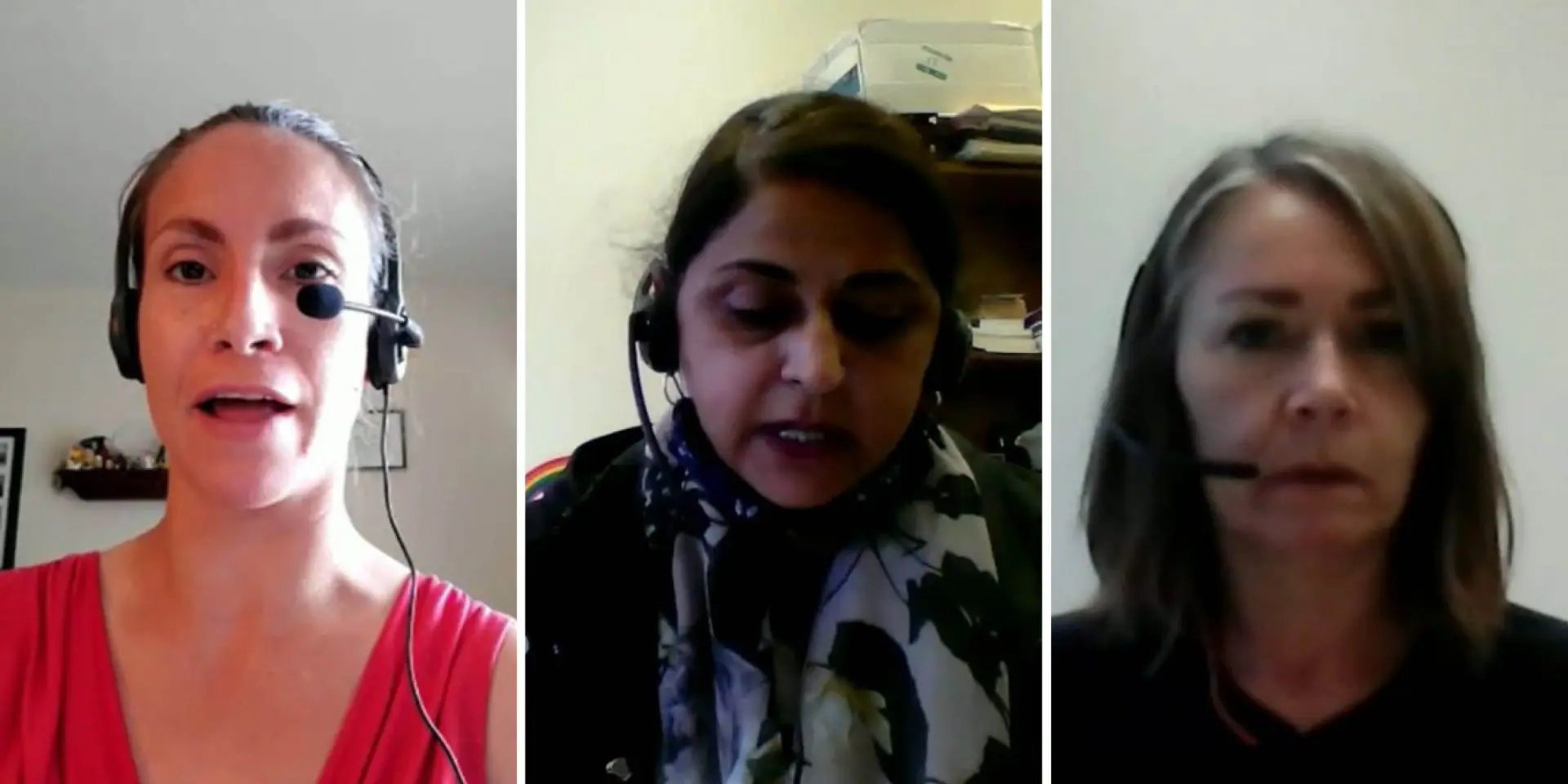 Hospitality workers Elisa Cardona and Kiran Dhillon, pictured from left to right on June 7, say they feel burned after being fired from their positions at a hotel that is being used by Ottawa as part of its hotel quarantine regime. Unite Here’s Michelle Travis, pictured at right on June 7, says there is little detail about when the hotel will no longer be used by Ottawa. Screen capture via ParlVu