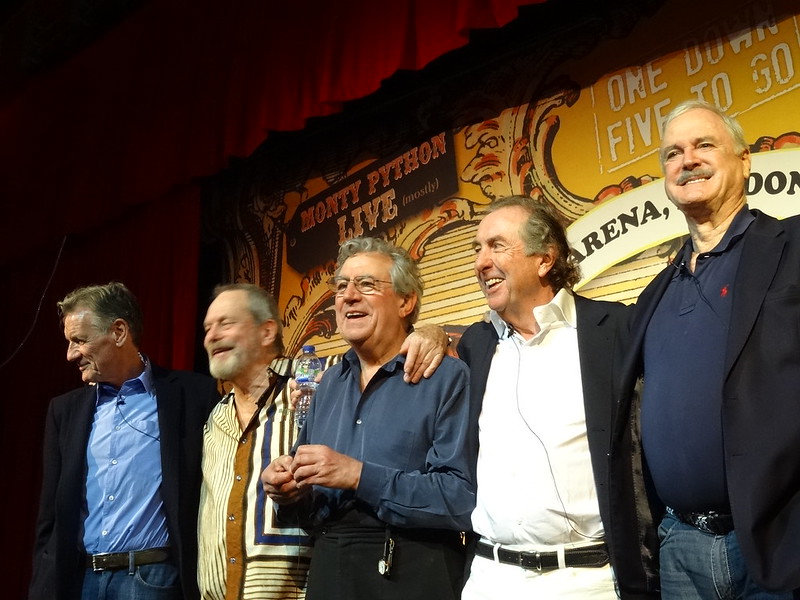 Members of Monty Python—from left, Michael Palin, Terry Gilliam, Terry Jones, Eric Idle, and John Cleese—are pictured in 2014. Were the comedy troupe around today, they would more than likely puncture the intolerance of those who take themselves far too seriously, writes Andrew Caddell. Flickr photograph by Eduardo Unda-Sanzana