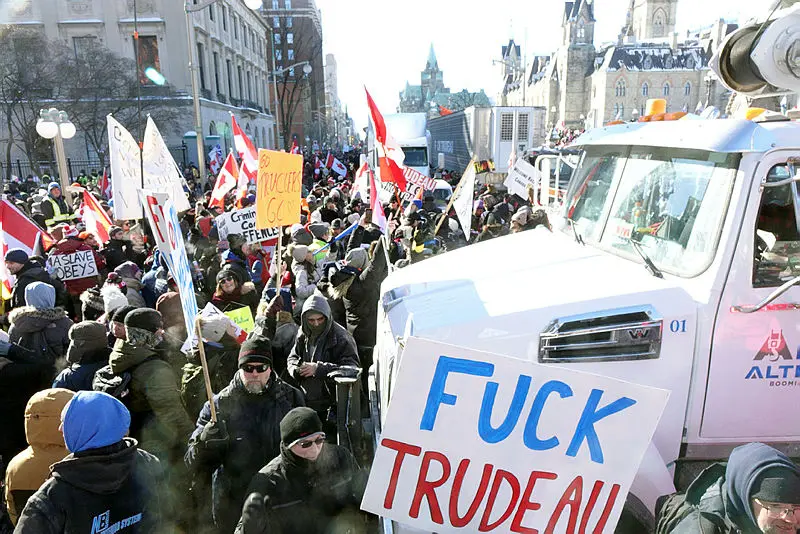 The Trucker Protesters, pictured Jan. 29, 2022, on the Hill. The protest looked almost like a hypothermic Canada Day, with obnoxious and drunken behaviour rampant and Canadian flags (many turned upside down) everywhere. I understand their pride and their sense of national identity, although I could not relate, writes Ottawa resident Seth Forward. The Hill Times photograph by Sam Garcia
