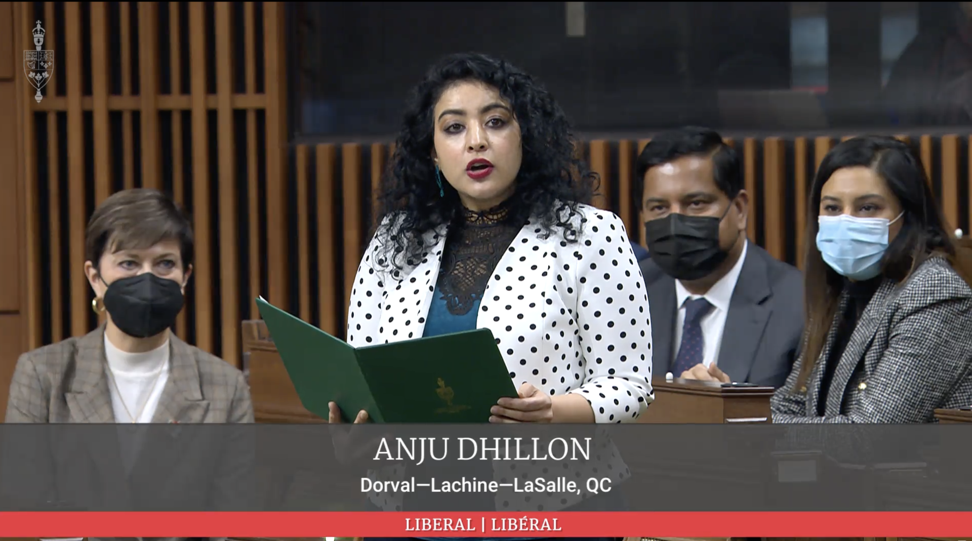 Liberal MP Anju Dhillon introduced her private member's bill, C-233, on Feb. 7, in reaction to the surge of intimate partner violence cases that erupted during COVID-19. A similar public bill from Conservative Senator Pierre-Hugues Boisvenu is making its way through the Red Chamber. Screenshot courtesy of ParlVu