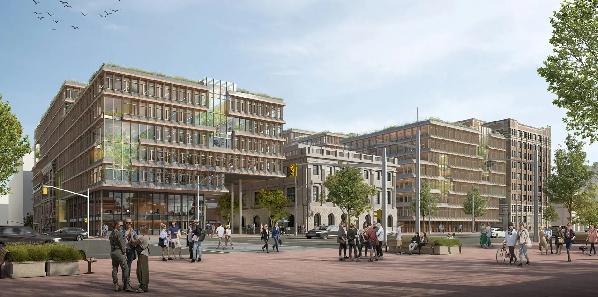 A view of the design concept for Block 2 by Watson MacEwen Teramura Architects and Behnisch Architekten, one of six finalists to present their design concepts publicly on April 11. Photograph courtesy of Public Services and Procurement Canada