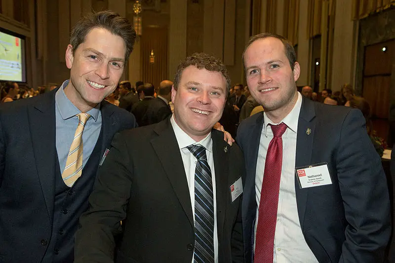 Former Liberal MP T.J. Harvey, centre, pictured with former Liberal MP Will Amos, left, and Liberal MP Nathaniel Erskine Smith, right, in 2017 on the Hill. Harvey is now running for the provincial New Brunswick Liberal leadership. The Hill Times file photograph by Jake Wright