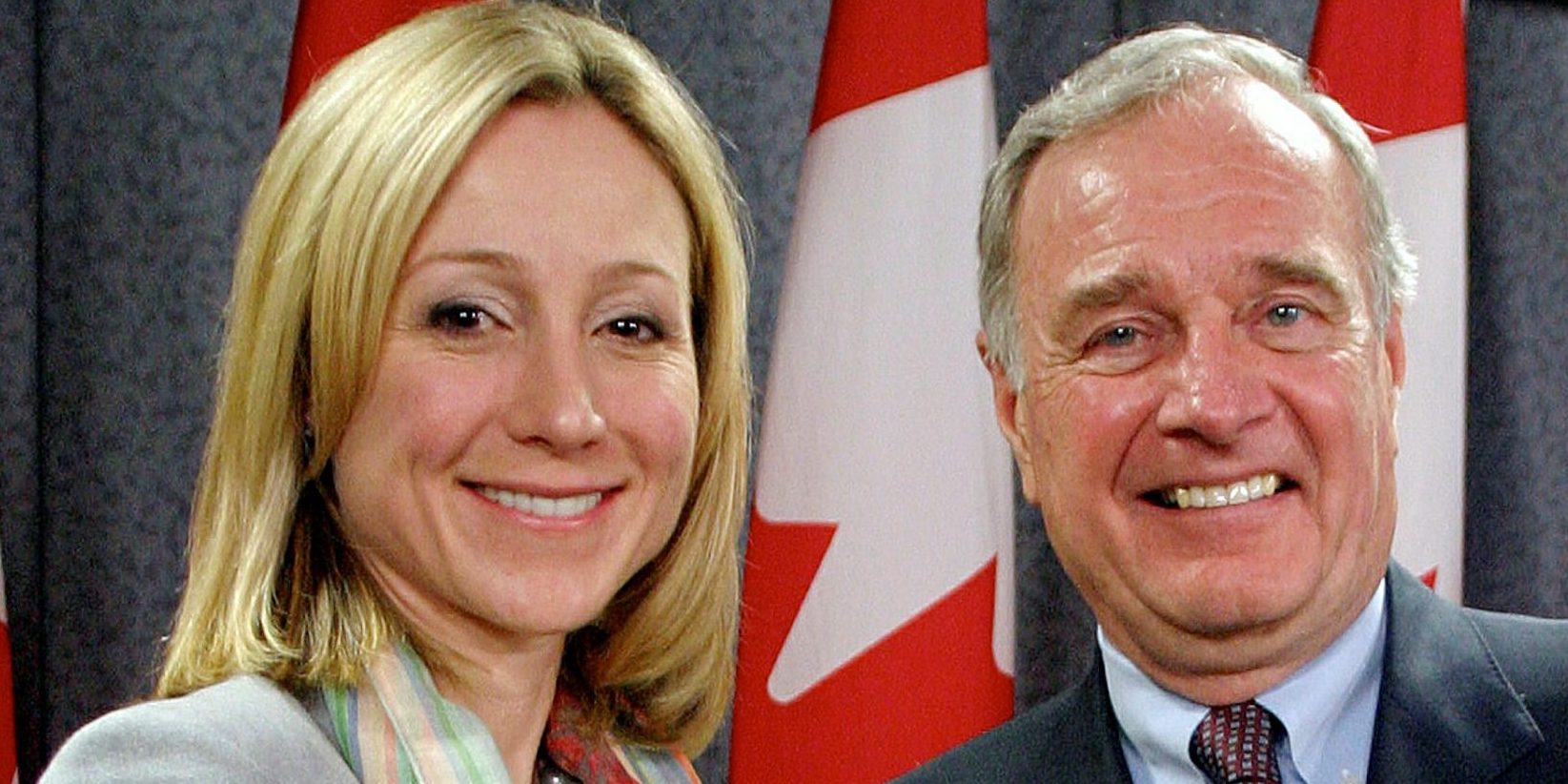 Then-MP Belinda Stronach, left, and then-prime minister Paul Martin, pictured in May 2005, after announcing that Stronach would be joining the Liberals right before a critical vote in the House of Commons. Stronach also joined Martin's cabinet. The Hill Times photograph by Jake Wright