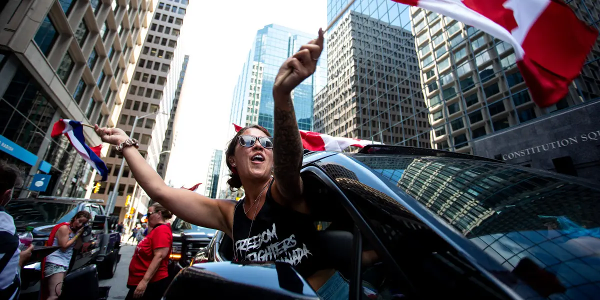 A protester participates in a rally on Kent Street in downtown Ottawa on July 23. This is a time when access to an independent and neutral editorial voice for Canada’s democratic process is more critical than ever, writes Christa Dickenson. The Hill Times photograph by Andrew Meade