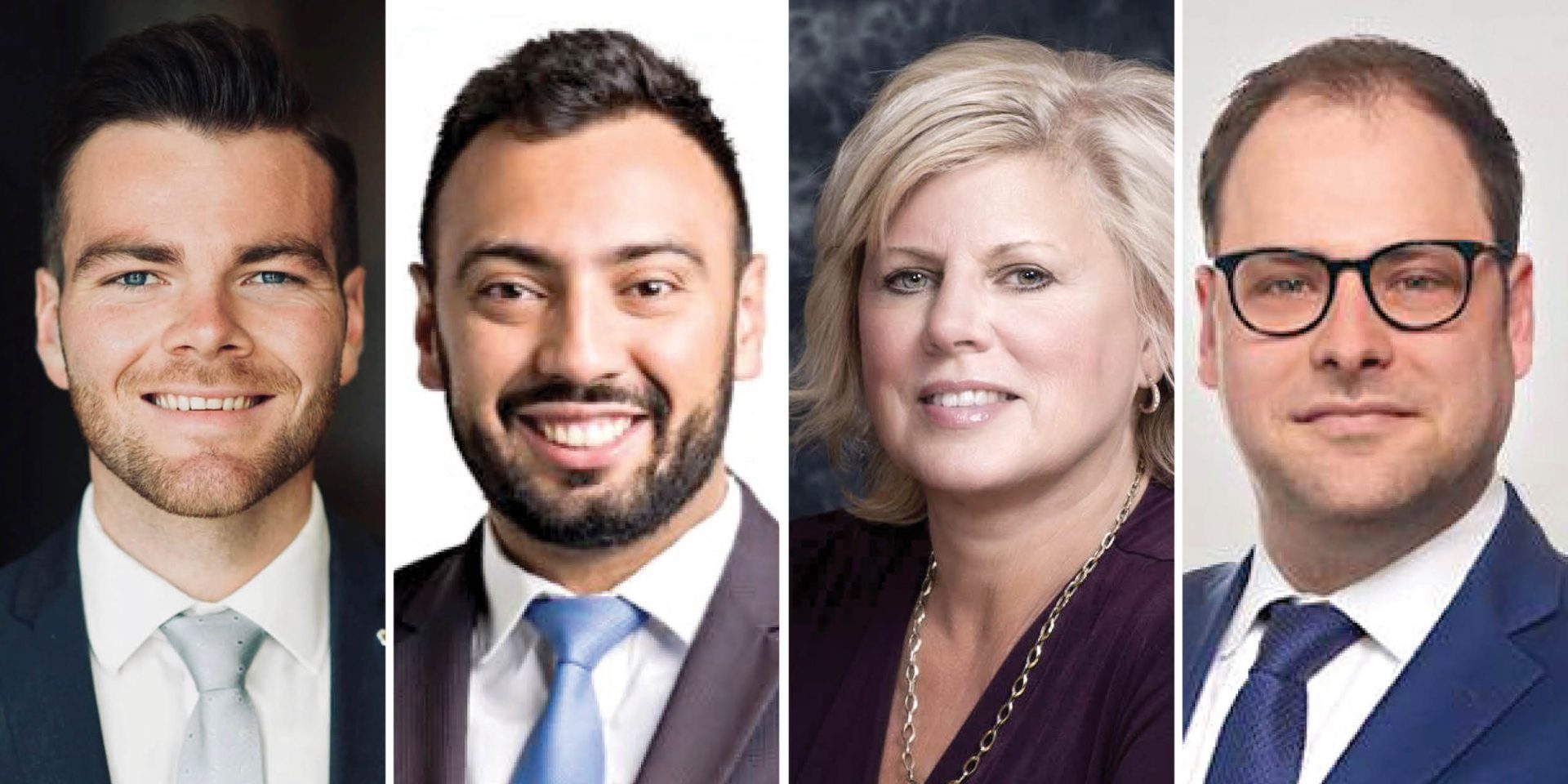 Gerrit Van Dorland, left, is the latest entrant to the nomination race in the safe Conservative riding of Oxford, Ont. Others include Conservative Party’s outreach chair Arpan Khanna; Woodstock city-county councillor Deb Tait; and vice-president of Global Public Affairs Rick Roth. Photographs courtesy of Gerrit Van Dorland, Twitter, City of Woodstock and Global Public Affairs