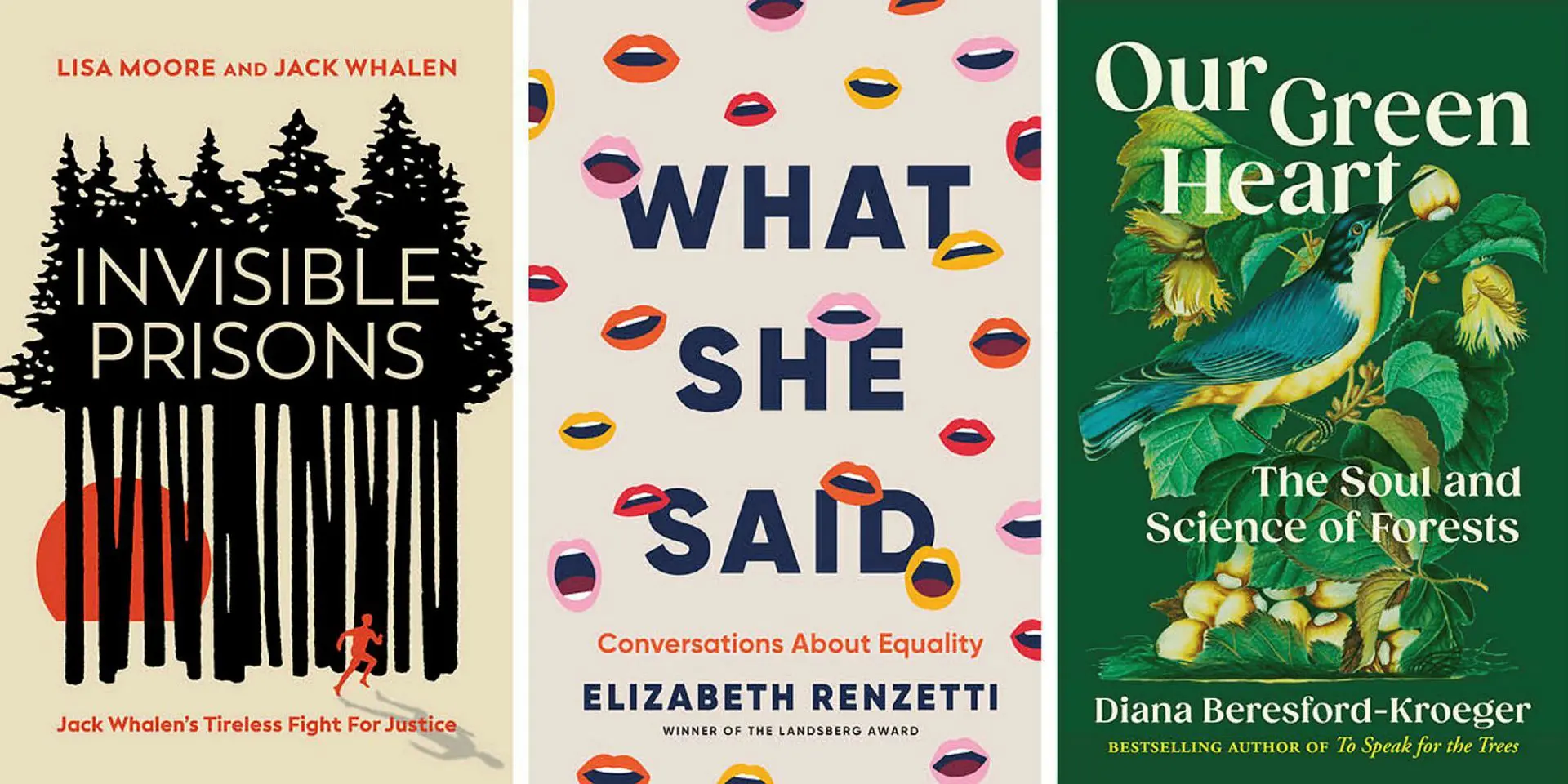 Invisible Prisons: Jack Whalen's Tireless Fight for Justice, by Lisa Moore and Jack Whalen; What She Said: Conversations About Equality, by The Globe and Mail's award-winning journalist Elizabeth Renzetti; and Our Green Heart: The Soul and Science of Forests, by Diana Beresford-Kroeger, will be released this fall. Book covers courtesy of Penguin Random House Canada