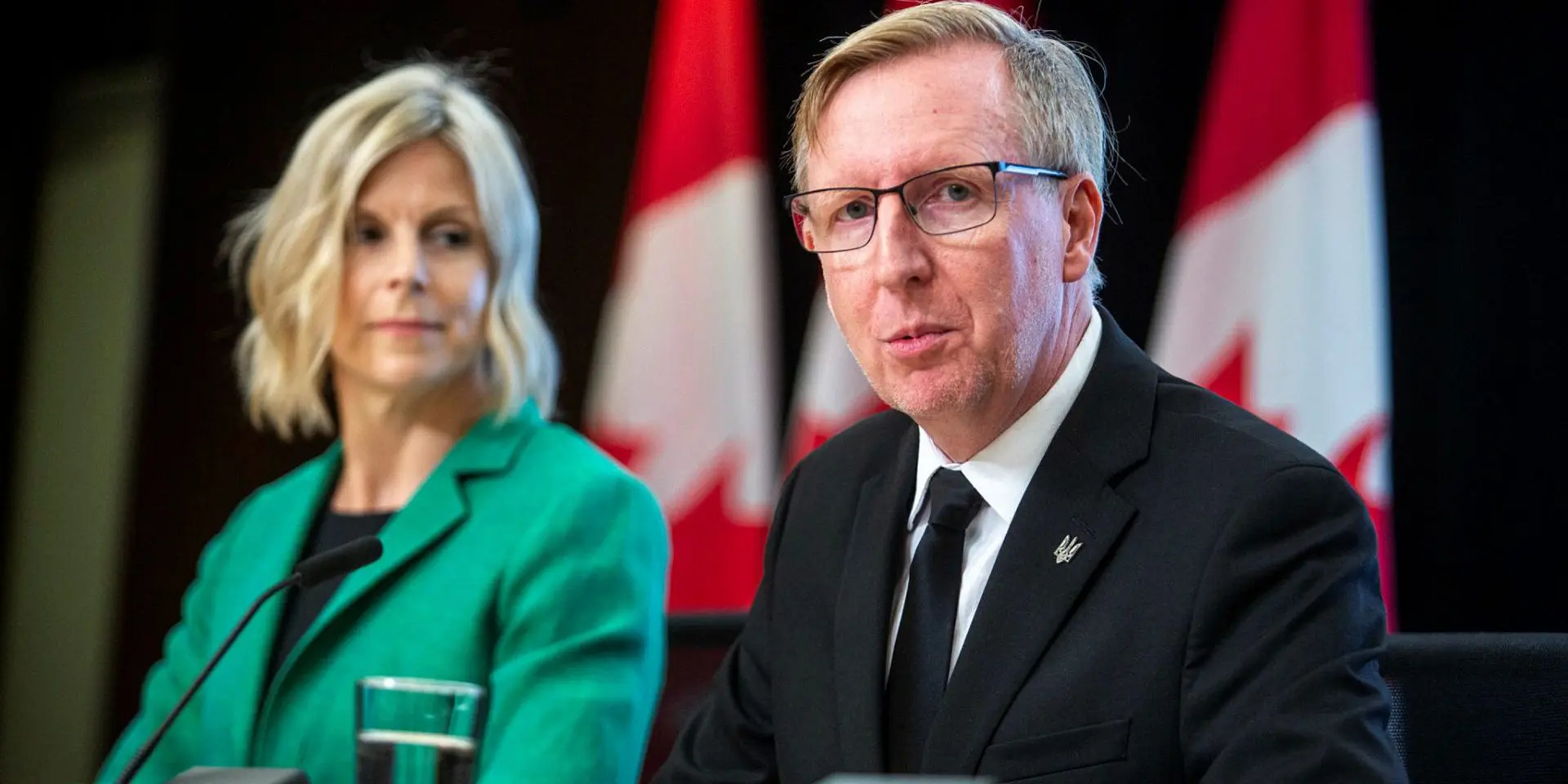 Dominic Cardy, right, interim leader of the Canadian Future Party, and Tara McPhail, interim national council president, hold a press conference in Ottawa on Aug. 14, 2024. The Hill Times photograph by Andrew Meade