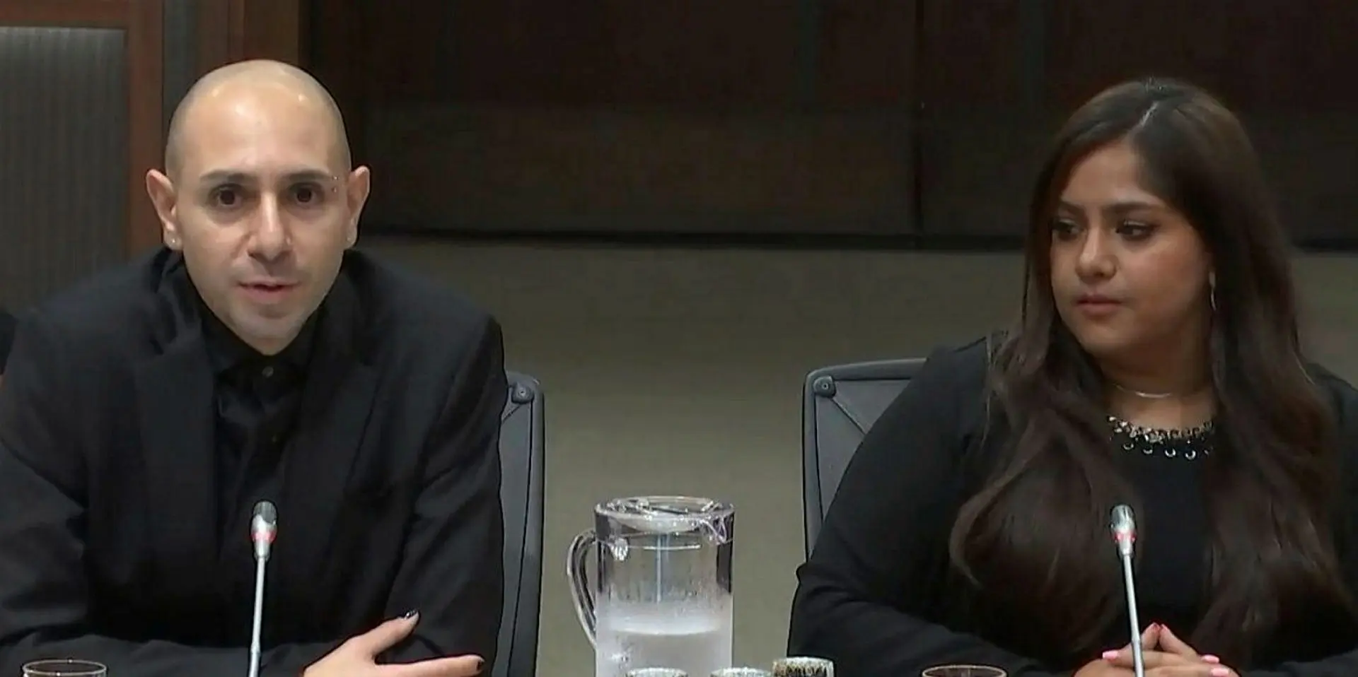 Amir Morv, left, and Ritika Dutt, the co-founders of Botler AI, speak at a House Government Operations and Estimates Committee meeting on Oct. 26, 2023. Screenshot courtesy of ParlVu