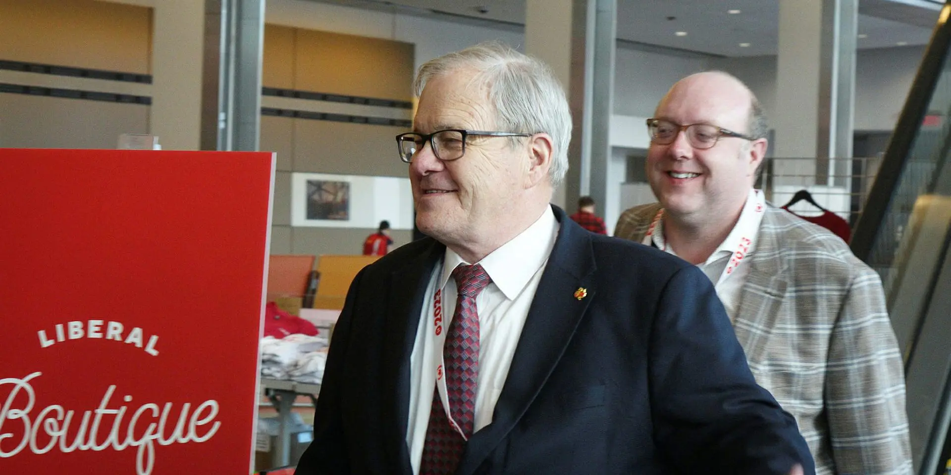 Agriculture Minister Lawrence MacAulay, left, with chief of staff Matthew Mann at the Liberal Party's national convention in Ottawa in May 2023. The Hill Times photograph by Sam Garcia