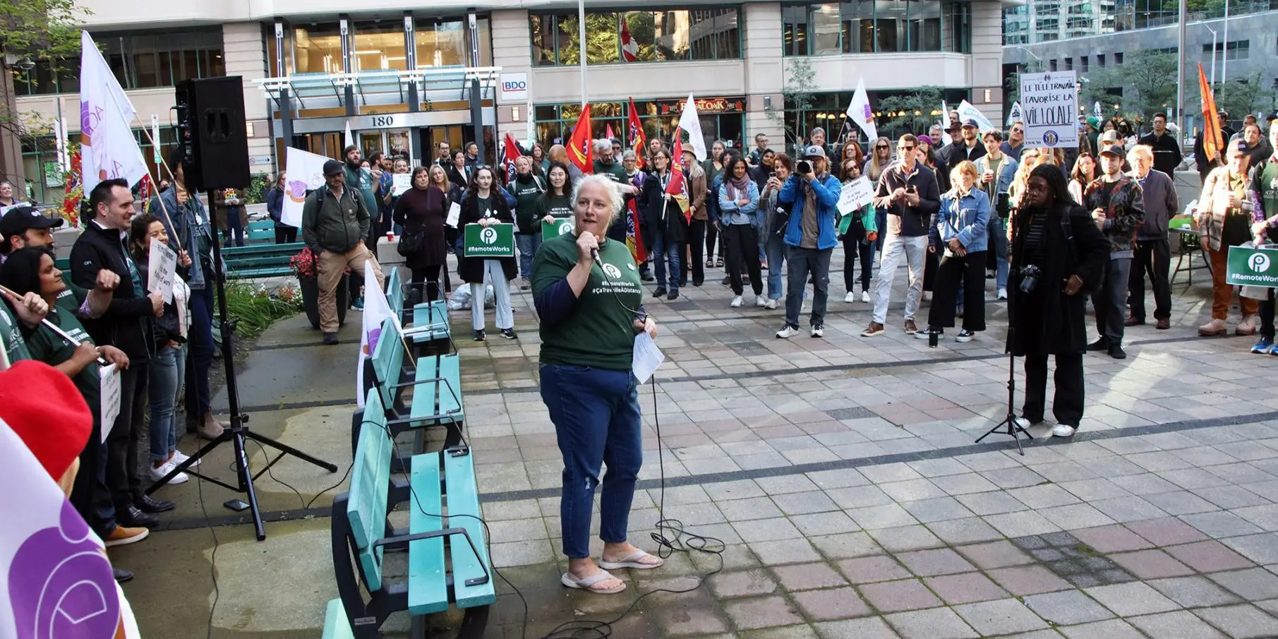 Jennifer Carr, president of Professional Institute of the Public Service of Canada, speaks at a Sept. 9, 2024, rally on the first day of the new remote work rules for federal civil servants. The Hill Times photograph by Sam Garcia