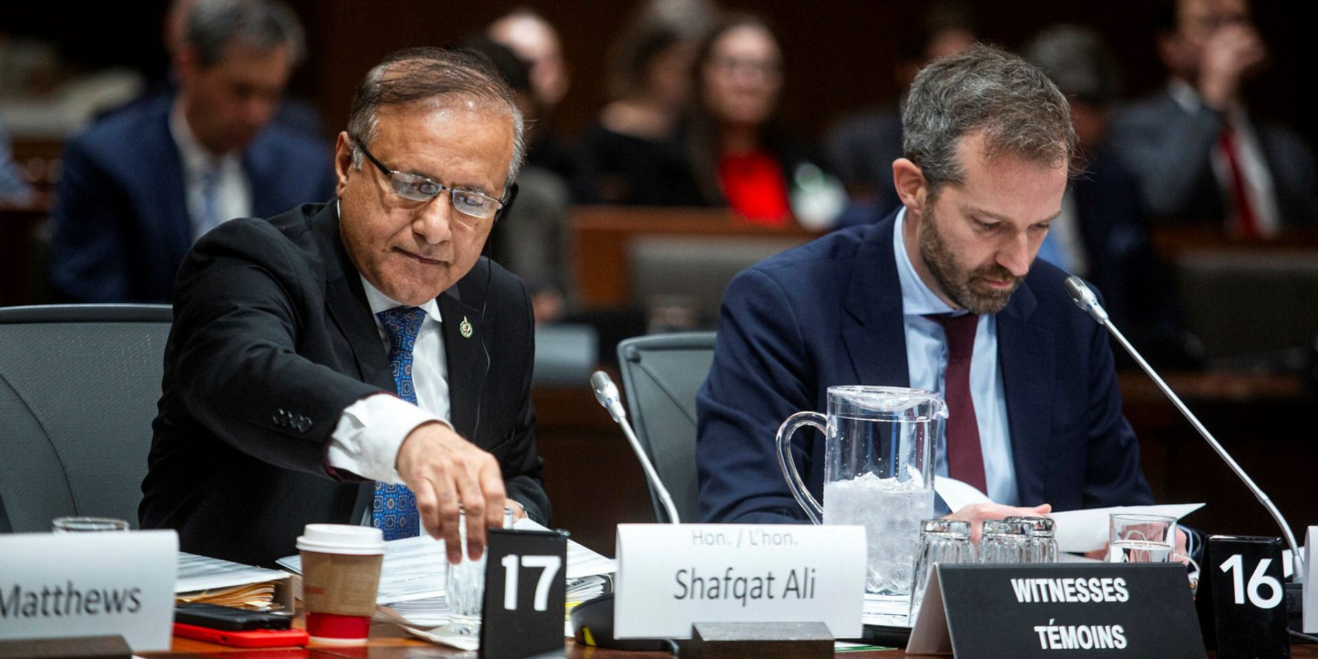 Treasury Board President Shafqat Ali, left, with Government Transformation, Public Works, and Procurement Minister Joël Lightbound at an Oct. 30 House Operations and Estimates Committee meeting. Ali tabled the 2025 Public Accounts in the House of Commons on Nov. 7. The Hill Times photograph Andrew Meade