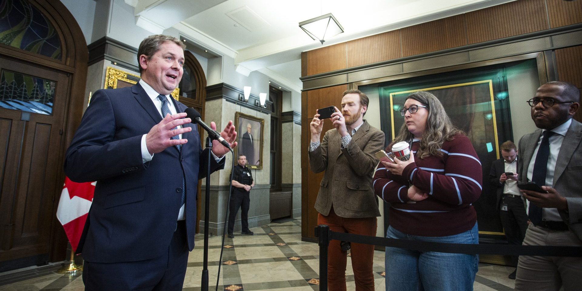 Conservative House Leader Andrew Scheer speaks with reporters in the House of Commons foyer before Question Period on Jan. 26, 2026. The Hill Times photograph by Andrew Meade