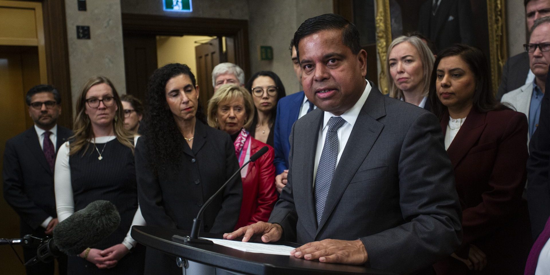 New Liberal caucus addition Lori Idlout, left, speaks with reporters before the Liberal party caucus meeting in West Block on March 11, 2026. 'I'm very thankful to be so warmly welcomed.' The Hill Times photograph by Andrew Meade